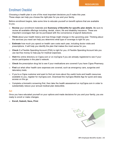 □ Review your enrollment materials and Summary of Benefits for specific plan details. Be sure to review all available offerings including; dental, vision, life and disability insurance. These are important coverages that can be purchased with the convenience of payroll deductions.
