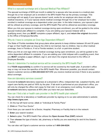 You can also call Cigna’s customer service number at 1-800-244-6224. 36 | BPS Employee Benefits Guide