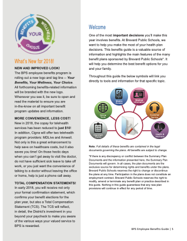 One of the most important decisions you’ll make this year involves benefits. At Brevard Public Schools, we want to help you make the most of your health plan decisions. This benefits guide is a valuable source of information and highlights the main features of the many benefit plans sponsored by Brevard Public Schools*. It will help you determine the best benefit options for you and your family.