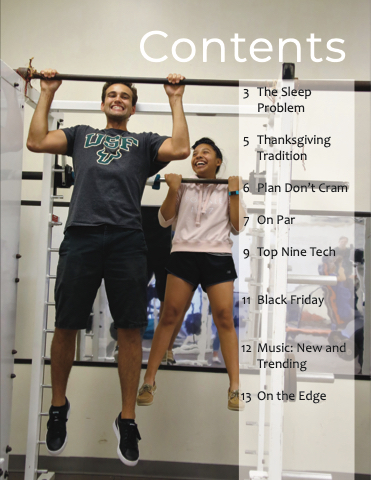Contents 3 The Sleep Problem 5 Thanksgiving Tradition 6 Plan Don’t Cram 7 On Par 9 Top Nine Tech 11 Black Friday 12 Music: New and Trending 13 On the Edge