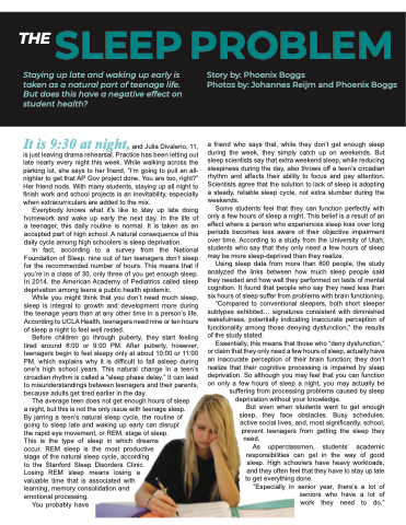Everybody knows what it’s like to stay up late doing homework and wake up early the next day. In the life of a teenager, this daily routine is normal. It is taken as an accepted part of high school. A natural consequence of this daily cycle among high schoolers is sleep deprivation.