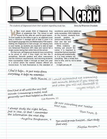 The students of Edgewood share their wisdom regarding study tips. Story by Rhiannon Drysdale