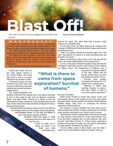 facilities of Brevard has caused many new space industries to form on the coast as well, such as SpaceX, Lockheed Martin, and Blue Origin. Seeing as a variety of jobs are offered at all of these companies, many families build careers here, which means that many students at Edgewood have a space-working parent.