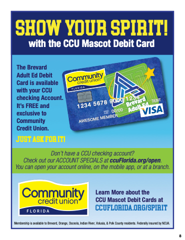 Adult Ed Debit Card is available with your CCU checking Account. It’s FREE and exclusive to Community