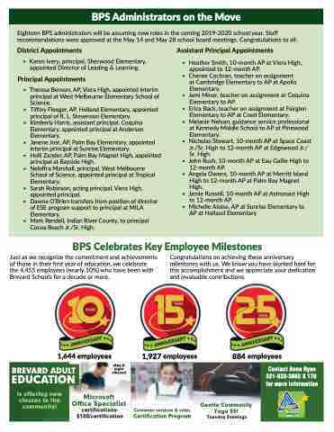 • Theresa Benson, AP, Viera High, appointed interim principal at West Melbourne Elementary School of Science.