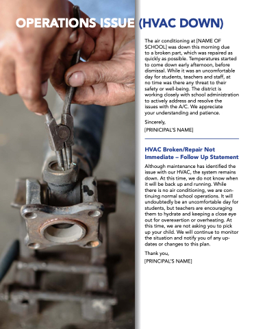 HVAC Broken/Repair Not Immediate – Follow Up Statement