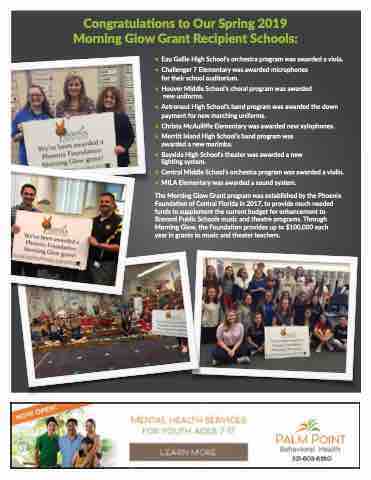 The Morning Glow Grant program was established by the Phoenix Foundation of Central Florida in 2017, to provide much needed funds to supplement the current budget for enhancement to Brevard Public Schools music and theatre programs. Through Morning Glow, the Foundation provides up to $100,000 each year in grants to music and theater teachers.