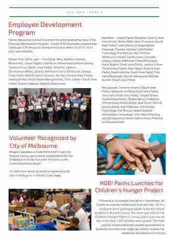 Not pictured: Cameron Howard (South Area Parks), Alexandra Schilling (South Area Parks), Jerry Gust (South Area Parks), Tangela Brown (Central Area Parks), Shelley Macon (Catherine Schweinsberg-Rood Library), Qadi Glover (Merritt Island Library), Kyle Hightower (Information Technology/Fire Rescue), Robert Garland (Information Technology), Vicki Ward (Planning and Development), Naomi Adkins-Hicks (Planning and Development).