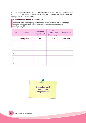 Temukan lima benda yang mempunyai sudut. Ukurlah besar sudutnya