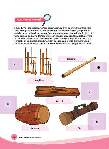 berasal dari Jawa Barat dan Tifa dari Papua dimainkan dengan cara dipukul.