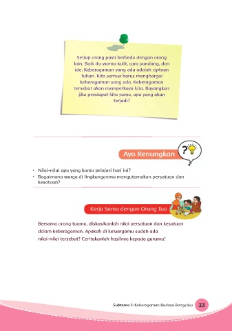 Bersama orang tuamu, diskusikanlah nilai persatuan dan kesatuan
