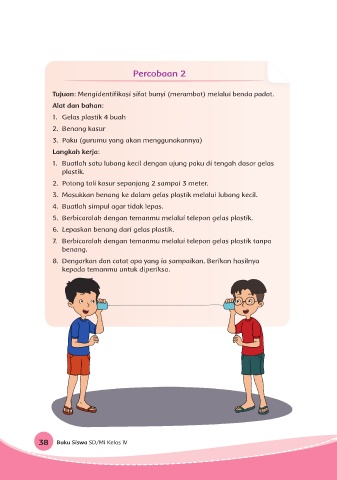 7. Berbicaralah dengan temanmu melalui telepon gelas plastik tanpa