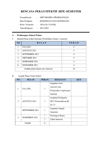 RENCANA PEKAN EFEKTIF (RPE) SEMESTER