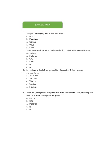 1. Penyakit tetelo (ND) disebabkan oleh virus….