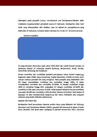 Sedangkan  pada  penyakit  Coryza,  tim Research  and  Development Medion  telah