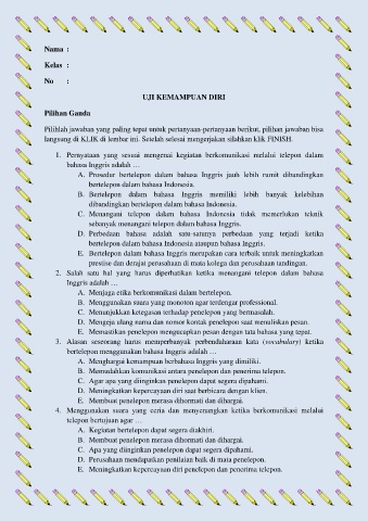 1. Pernyataan yang sesuai mengenai kegiatan berkomunikasi melalui telepon dalam