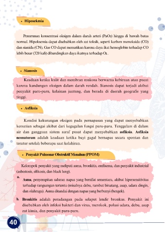 normal. Hipoksemia dapat disebabkan oleh zat toksik, seperti karbon monoksida (CO)