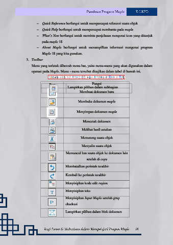 operasi pada Maple. Menu - menu tersebut disajikan dalam tabel di bawah ini.