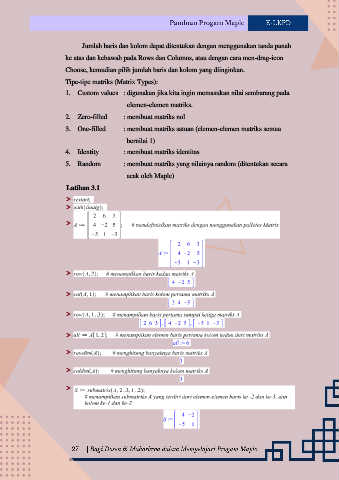 3. One-filled : membuat matriks satuan (elemen-elemen matriks semua