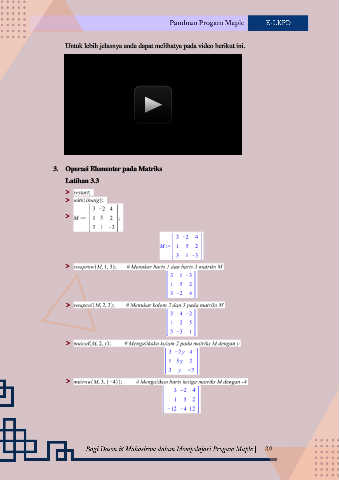 Panduan Progam Maple E-LKPD Untuk lebih jelasnya anda dapat melihatya pada video berikut ini. 3. Operasi Elementer pada Matriks Latihan 3.3 > > > > > > > 30