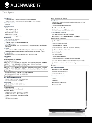 Display Details Audio, Networking and Wireless