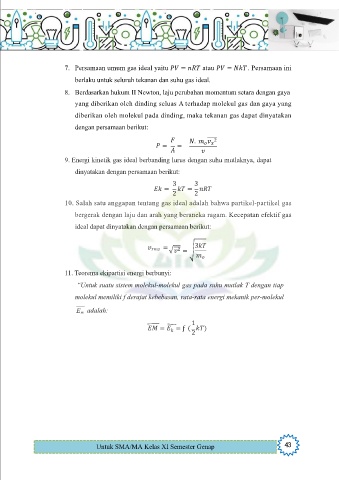 9. Energi kinetik gas ideal berbanding lurus dengan suhu mutlaknya, dapat