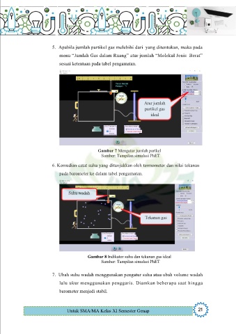 menu “Jumlah Gas dalam Ruang” atur jumlah “Molekul Jenis Berat”