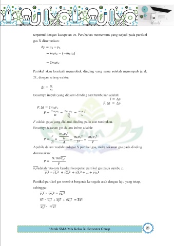 adalah rata-rata kuadrat kecepatan partikel gas pada sumbu x.