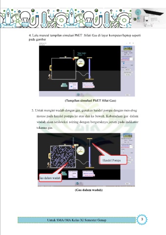 4. Lalu muncul tampilan simulasi PhET  Sifati Gas di layar komputer/laptop  seperti