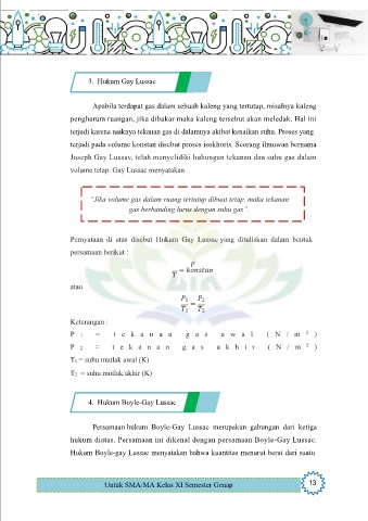 Pernyataan  di  atas  disebut  Hukum  Gay  Lussac yang  dituliskan  dalam  bentuk