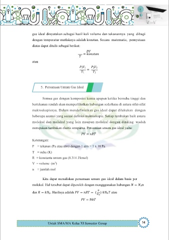 gas ideal dinyatakan sebagai hasil kali volume dan tekanannya yang dibagi