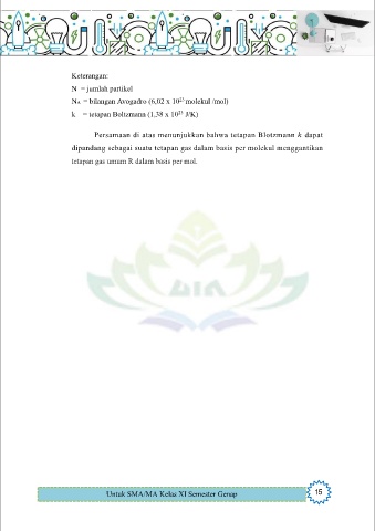 Persamaan di atas menunjukkan bahwa tetapan Blotzmann   dapat