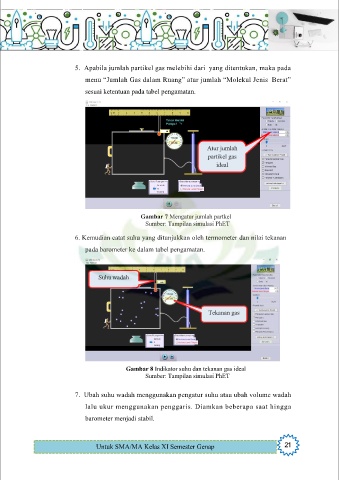 menu “Jumlah Gas dalam Ruang” atur jumlah “Molekul Jenis  Berat”
