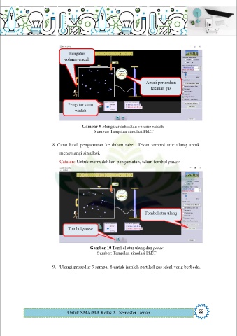9.  Ulangi prosedur 3 sampai 8 untuk jumlah partikel gas ideal yang berbeda.