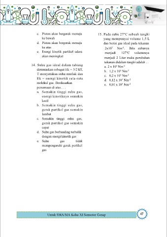 14. Suhu gas ideal dalam tabung a. 2 x 10 Nm -2