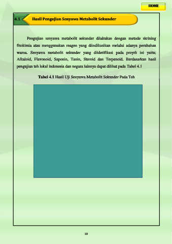 Tabel 4.1 Hasil Uji Senyawa Metabolit Sekunder Pada Teh