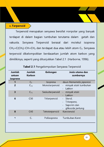 Tabel 2.1 Pengelompokan Senyawa Terpenoid