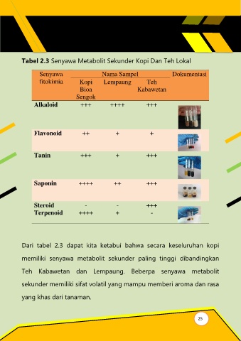 Tabel 2.3 Senyawa Metabolit Sekunder Kopi Dan Teh Lokal
