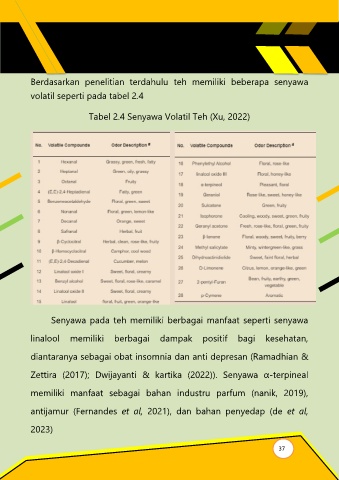 Tabel 2.4 Senyawa Volatil Teh (Xu, 2022)