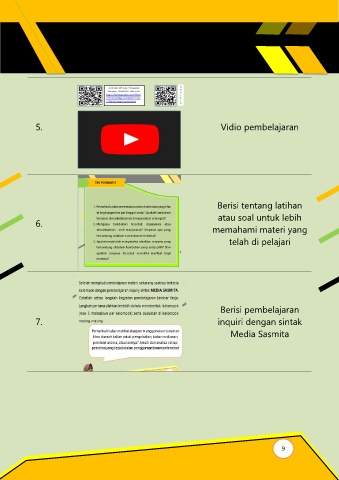 5. Vidio pembelajaran Berisi tentang latihan atau soal untuk lebih 6. memahami materi yang telah di pelajari Berisi pembelajaran 7. inquiri dengan sintak Media Sasmita 9