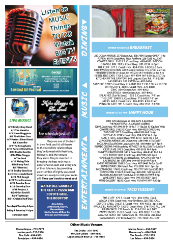 DIZZ’S AS IS 2794 S. Coast Hwy. 494-5250 W 6 - 9p