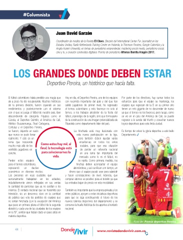 El fútbol colombiano había perdido una magia que Hoy en día, el Deportivo Pereira, uno de los equipos Por parte de los directivos, hay sumar todos los
