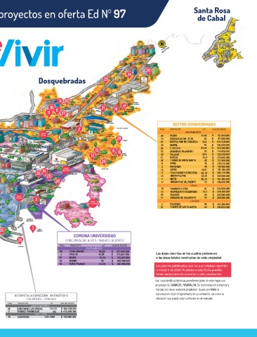 COMUNAS CUBA, CONSOTA, EL OSO, SAN JOAQUÍN SENDEROS DE PALMA CEIBA GRANDE 20 17 MIRADOR DE VILLAVENTO 71 $ 182.900.000