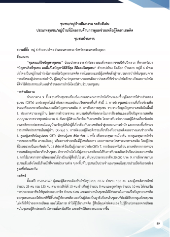 ของชุมชนตนเอง มืีทัศนคติิทีดีข่นติ่อผ่้ใช้ยาเสพติิด มองเป็นผ่้ป่วย เป็นญาติิ เป็นคนในชุมชนทีติ้องได้รับการด่แลโดยชุมชน