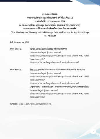09.30-12.00 น. ห่้อง Grand พิธ่เปิดการประชุุมวิิชาการยาเสพติิดแห่่งชาติิ คร้งที่่ 25 ปี 2568