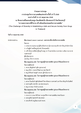 14.30-16.00 น. ห่้อง Grand Lesson Learned : ผลกระทบที่่คาดไม่ถึงจากยาเสพติิด