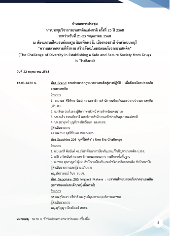 13.00-14.30 น. ห่้อง Grand จากประมวลกฎหมายยาเสพติิดสู่การปฏิิบ้ติิ : เพือส้งคมไทยปลอดภ้ย