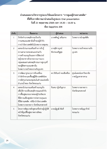 ที่่ได้ร้บการพิจารณานำเสนอในรูปแบบ Oral presentation
