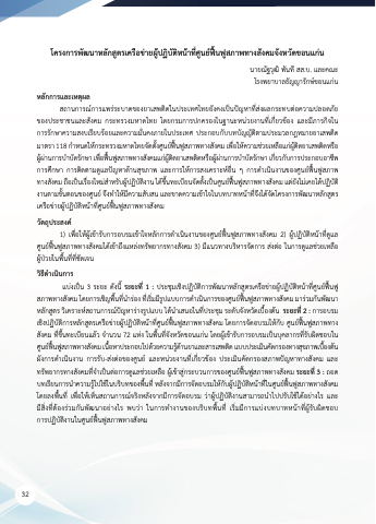 เชิงปฏิิบ้ัติิการหลักส่ติรเคัรือข่ายผ่้ปฏิิบ้ัติิหน้าทีศ่นย์ฟื้้นฟื้่สภาพทางสังคัมื โดยการจัดอบรมให้กับ ศ่นย์ฟื้้นฟื้่สภาพทาง