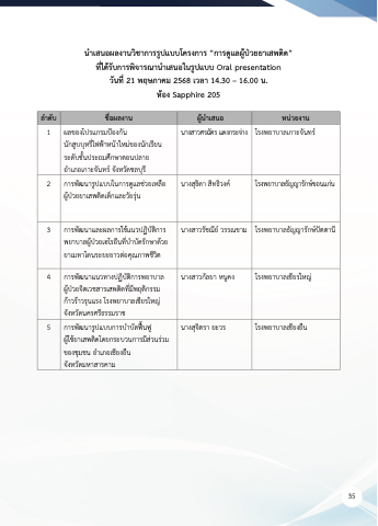 ที่่ได้ร้บการพิจารณานำเสนอในรูปแบบ Oral presentation